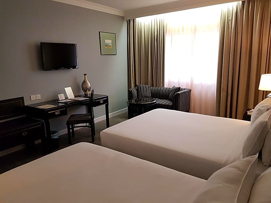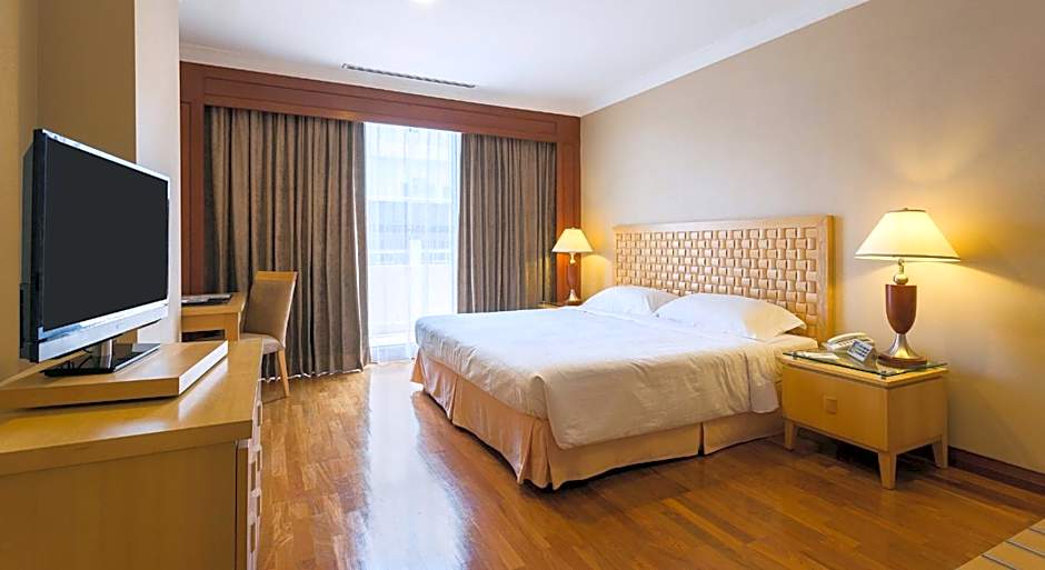 This suite has a mini-bar, a safe deposit box and a flat-screen TV.